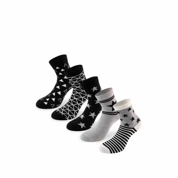 Aceste sosete cu motive la moda, realizate din bumbac de calitate usor de intretinut, intr-un pachet practic de 5 perechi, sunt extrem de confortabile la purtare. Datorita lipiturii manuale fine si a mansetei extra-moale, nu exista puncte de presiune. 71 % bumbac 27 % nilon 2 % spandex